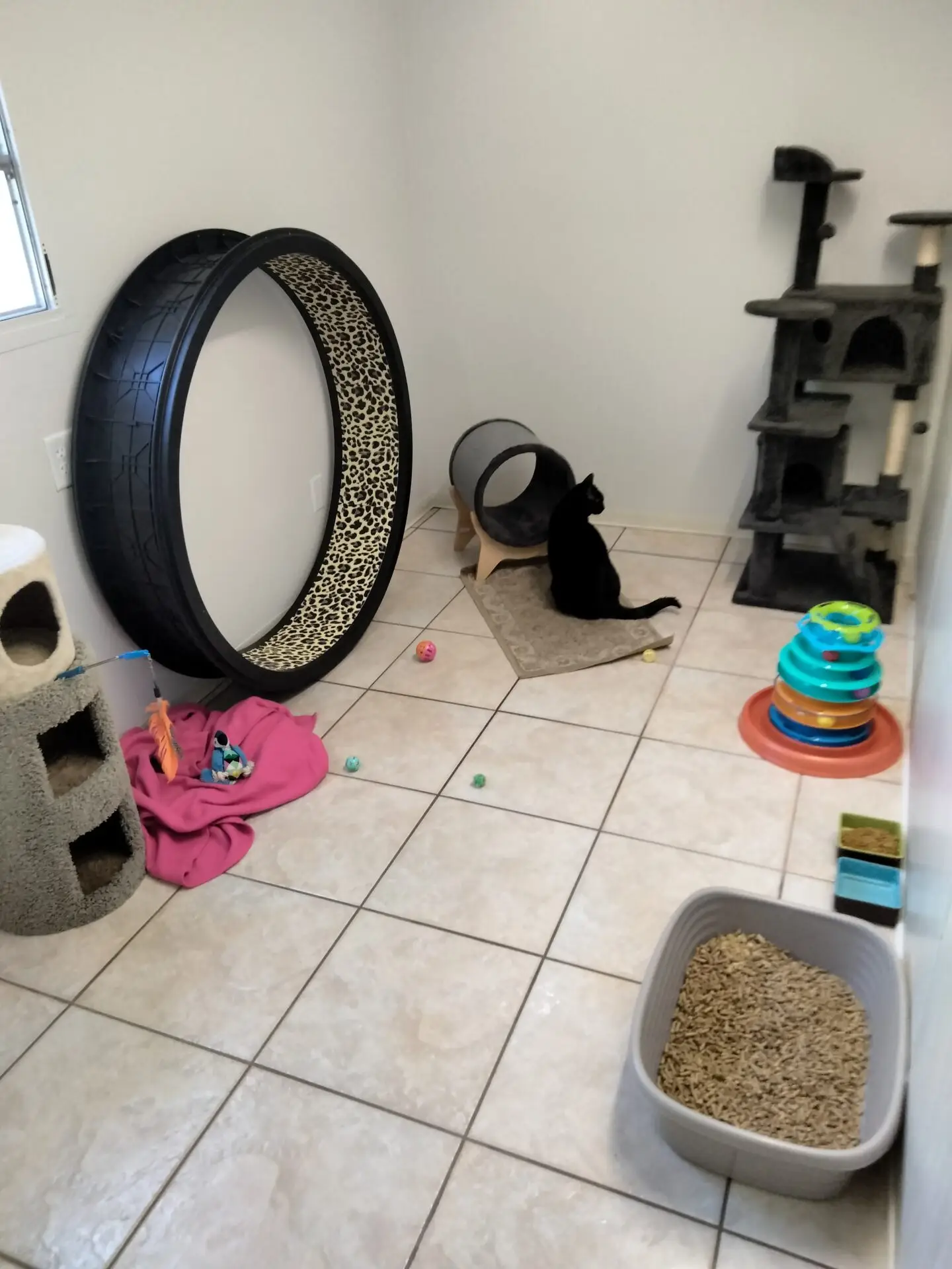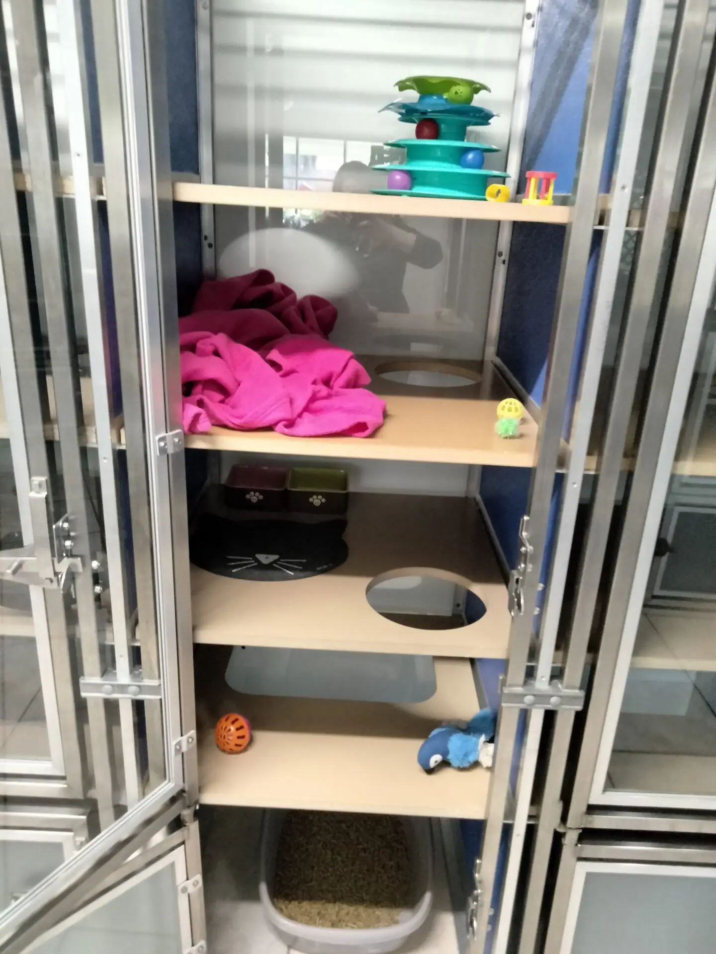 Above is an example of one of our seven Sweetie Suites. Each suite has a sunbathing window, Tower, Toys and much more! Greast for multiple cat homes that want to stay together or just one very special cat.